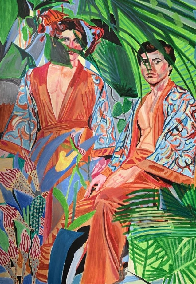 My works on human figures unfold in an illustrative, powerful style in their relationship with the environment and folk tradition. Not only the folk costumes, but also the style of the 70's, 80's have a big impression on my art.