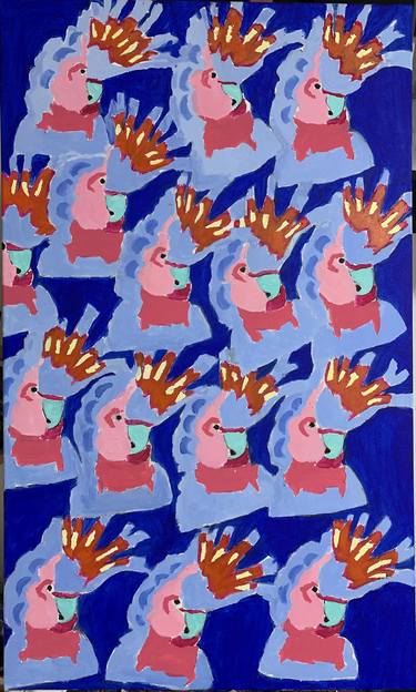 Inka kakadu very elegant, unusually beautiful parrot with a pinkish-white plumage. I made my last bird paintings with semi-template work, of course I also make the template myself, and I enjoy the simplicity and fun effect that comes with it. Acrylic on canvas without frame.