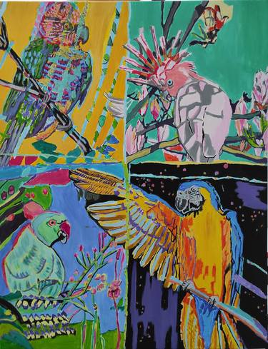 I tried to quote Andy Warhol with bright, different backgrounds and my favorite theme with birds.